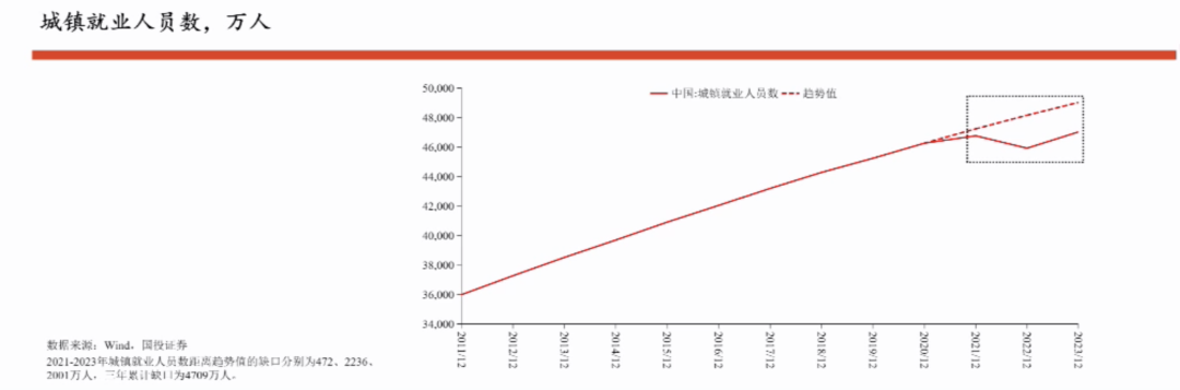 这10个高估的百分点,与城镇服务累计所蚀本的4700万东说念主,占城镇服务总东说念主口的能够10%是接近的。