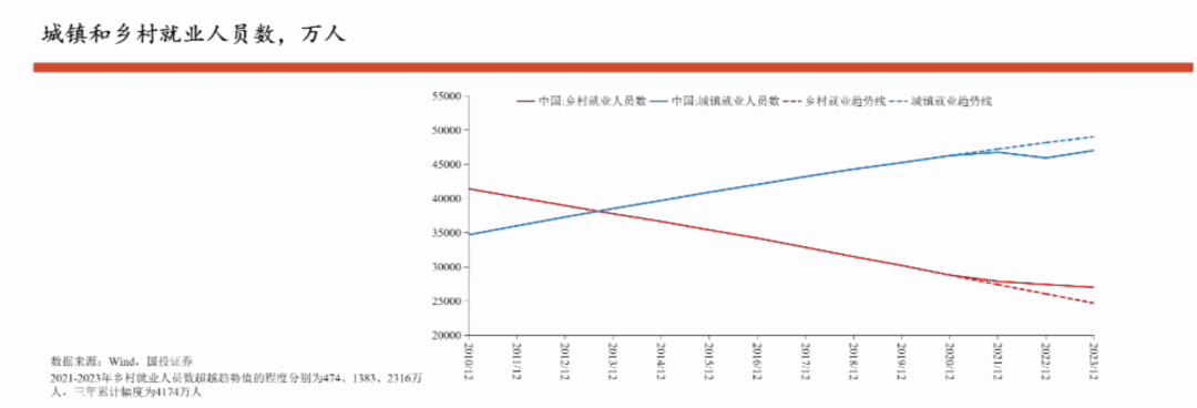 一个进犯的证明是,疫情后,跟着城镇创造服务才略的权贵恶化,大都东说念主口复返或淹留在农村地区,这些数据在城镇的休闲率数据上发扬不出来,但在总东说念主口服务的数据有昭彰发扬。