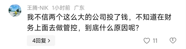 广东网友说:我不信两个这样大的公司投了钱,不知谈在财务上头去作念惩处,到底什么原因呢?