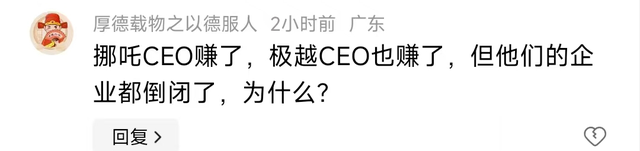 广东网友说:挪吒CEO赚了,极越CEO也赚了,但他们的企业齐倒闭了,为什么?