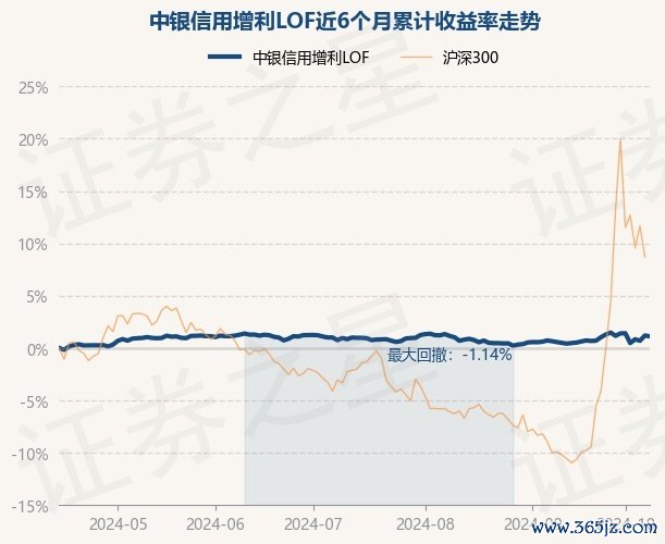 本站音讯,10月15日,中银信用增利LOF最新单元净值为1.1004元,累计净值为1.7541元,较前一交当年着落0.07%。历史数据清晰该基金近1个月高潮0.59%开云kaiyun体育,近3个月高潮0.15%,近6个月高潮1.12%,近1年高潮4.41%。该基金近6个月的累计收益率走势如下图: