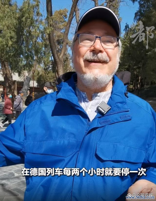 还有一个蓝穿着的大叔感触说,中国高铁可比德国的还好坏!