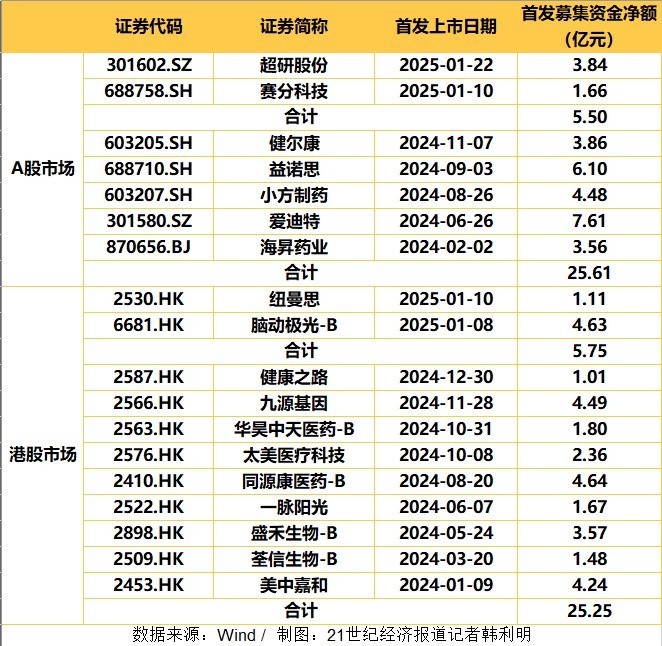 2024年底,毕马威发布《中国内地与香港IPO市集》指出,A股市集在2024年IPO数目和募资总和分裂为125宗、1191亿元,同比下落60%、70%。而阅历了超三年解救期的生物医药行业,同期进展也一度探底。