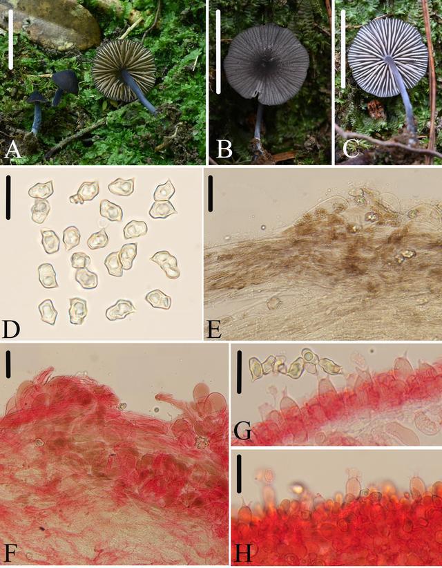 它们均为粉褶菌属蓝色亚属下的物种。此类真菌子实体多为资产菌状至脐菇状,名义常被绒毛或鳞片,菌褶菌髓细胞内常具亮堂颗粒。