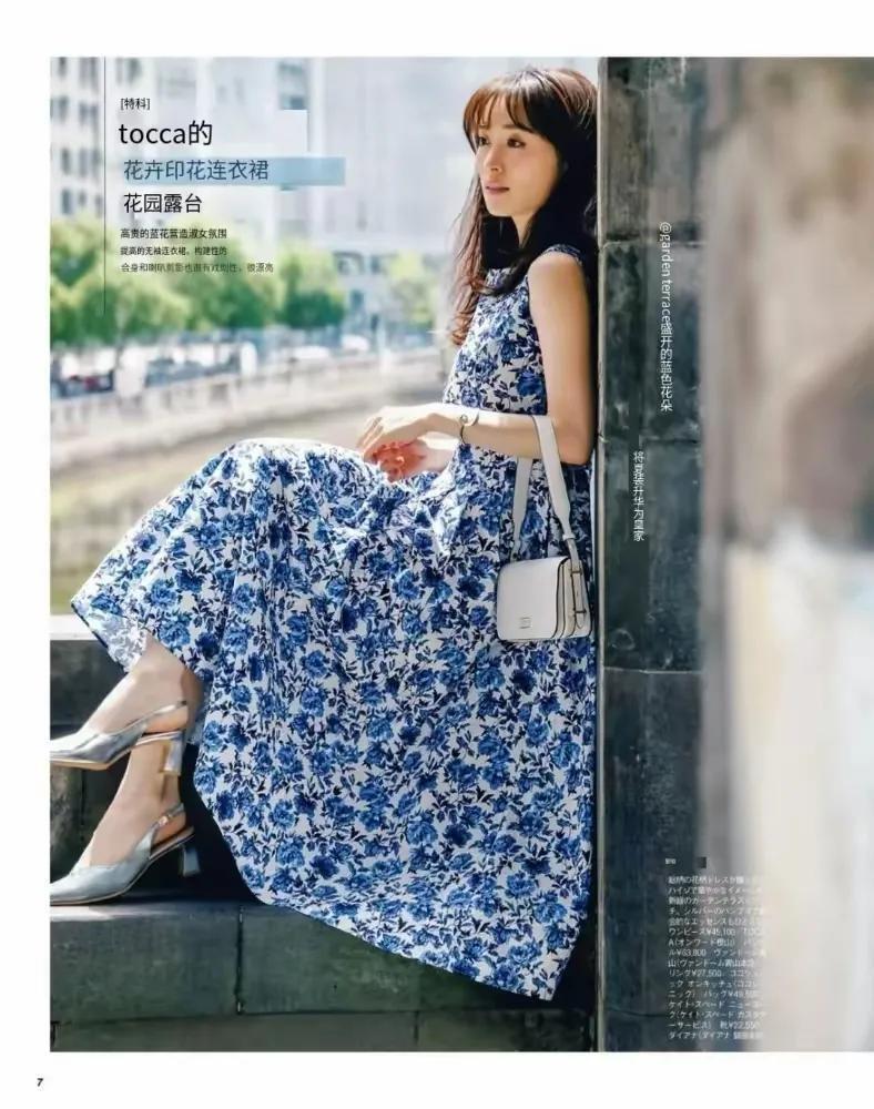 若是你的确可爱穿印花的衣服单品,那么一定要贪图从简大气,举例底下这一条蓝色的印花连衣裙,这条裙子作念了高腰收腰的贪图,裙摆是外扩的神志,伞状的版型照实能很好的达到遮肉显瘦的遵守 ,脚上再穿戴一对银灰色的低跟单鞋,让整个造型变得愈加大气。