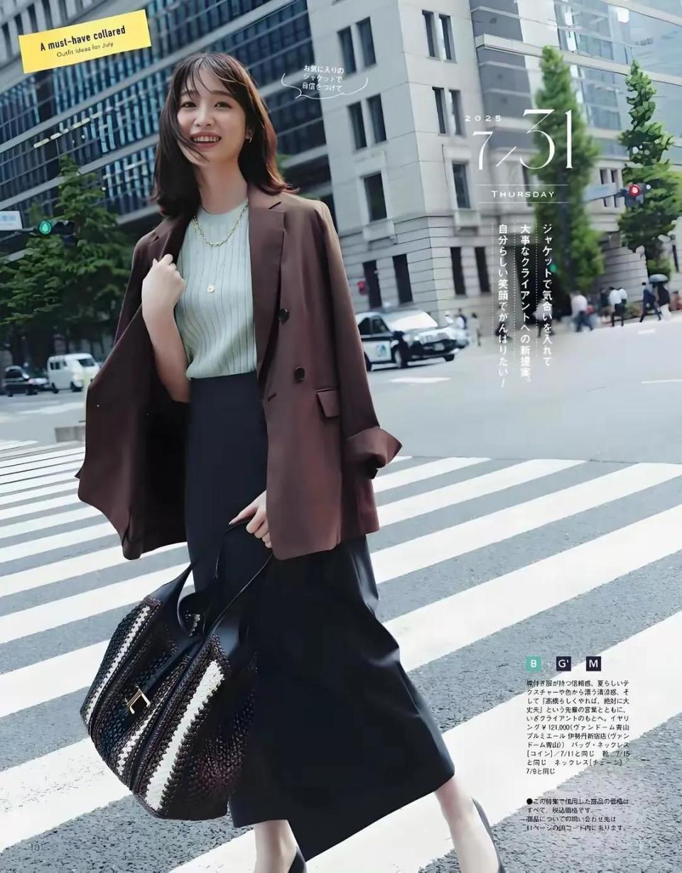 天然啦,念念让我方的穿搭偏舒适点,还不错用棕咖色的西服外衣,内搭浅绿色的赤诚上衣,搭配上玄色的直筒半身裙